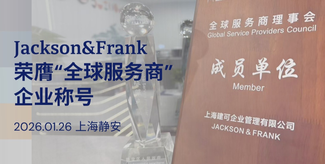 Jackson&Frank(J&F)荣膺上海市静安区“全球服务商”企业称号,专业实力获权威认可。J&F长期深耕欧洲,为企业出海提供雇佣、薪酬、外派、合规等端到端解决方案与一站式人才管理服务体系。展望未来,J&F将持续发挥中欧服务桥梁作用,助力中国企业高质量全球化。