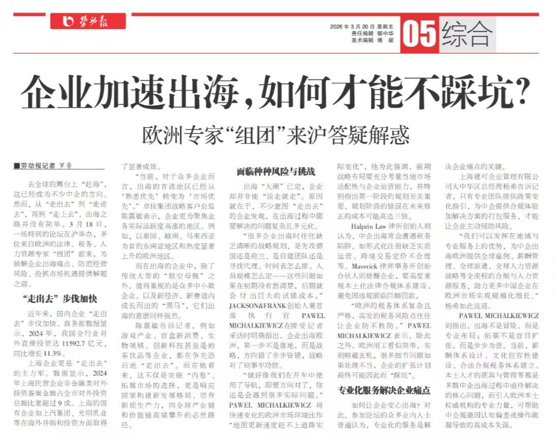 Jackson&Frank(J&F)荣膺上海市静安区“全球服务商”企业称号,专业实力获权威认可。J&F长期深耕欧洲,为企业出海提供雇佣、薪酬、外派、合规等端到端解决方案与一站式人才管理服务体系。展望未来,J&F将持续发挥中欧服务桥梁作用,助力中国企业高质量全球化。